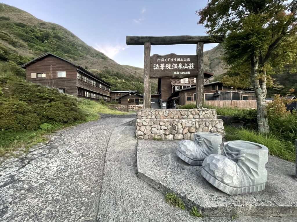 6時間ほど歩いて山荘の温泉へ。。。