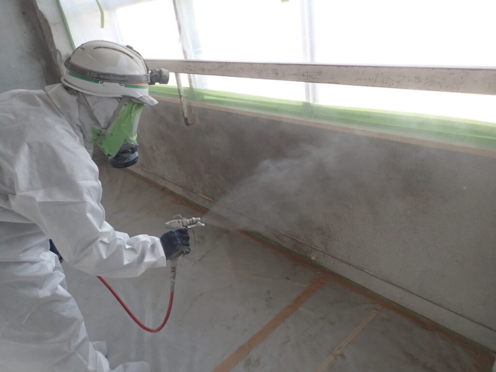News 新着情報 お知らせ 2026.1.15 【重要なお知らせ】代表名を騙った迷惑メールについて お知らせ 2026.1.14 功績賞を受賞しました お知らせ 2025.12.1 年末年始休暇のお知らせ 新着情報 一覧へ けんちく部log。 Blog トップページ > けんちく部log。 > 桜丘中学校校舎1号棟長寿命化改良工事 Ver.2 2025.8.18 公共工事桜丘中学校校舎1号棟長寿命化改良本体工事 桜丘中学校校舎1号棟長寿命化改良工事 Ver.2 アスベストが塗料・下地調整材に混入している事により除去作業を行っています。 飛散防止のため集塵機付きのグラインダーにて削り取ります。 飛散防止材を吹き付けて完了です。 この暑い中 防護服を着ての作業、作業員に感謝です。 内田 おかげさまでランキング上位更新中!こちらをクリック↓ 人気ブログランキング 一覧へ戻る 前の記事へ 次の記事へ Architecture 建築部 「建築で新たな価値を創出する」 詳しく見る About 私たちについて Works 施工実績 Pickup News お知らせ 6坪Gallery ホームページ 未来を創造していくエネルギーがたくさん詰まった場所です。 お知らせ かごしま木造住宅コンテスト2023 最優秀賞である【知事賞】を受賞しました! お知らせ NICHIHA SIDING AWARD 2022 坂之上の家 「ニチハ賞」を受賞しました。 お知らせ KMEW DESIGN AWARD2020 喜入の家Ⅲ 竹原賞を受賞しました。 お知らせ pacbo 当社でRenovationした Cafe併設のサテライトOfficeが知覧町に誕生! 採用情報 中途採用スタート これからの未来を共に描く仲間を求めています。 お知らせ けんちく部log。 スタッフあれこれ更新中