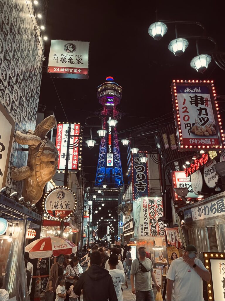 新世界に建つネオンの美しい通天閣も、その後の診断により2015年には免震構造へと更新されてます