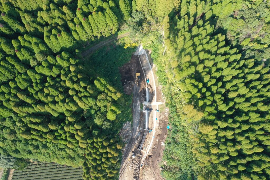 現在、土木部の現場の一つに令和7年度林地荒廃防止事業(後岳下地区)という工事を行っています。